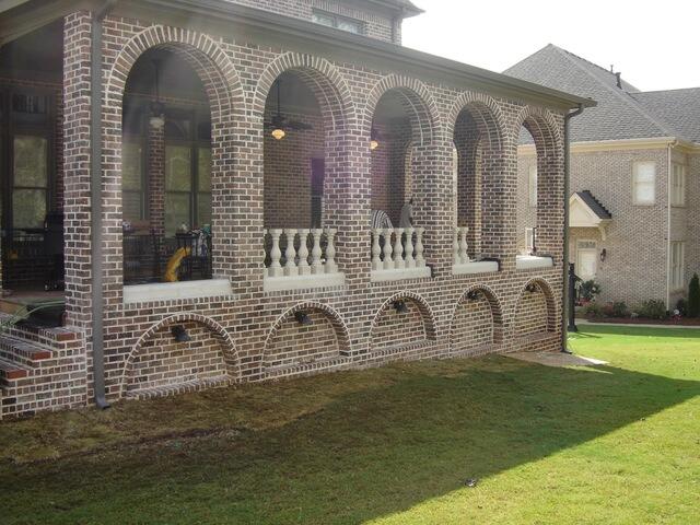 The exterior experts at Housworth Construction recently transformed a weathered, outdated outdoor space into a stunning porch and patio for a homeowner in Duluth, GA. The team designed and constructed a brick patio room addition that elevated the home’s outdoor living area. The project began with the delivery of high-quality materials, followed by careful preparation and installation of footers to create a solid foundation. Once the concrete walls were in place to support the brickwork, the crew built elegant brick arches across the base of the patio, adding both structural strength and refined visual appeal. As the work continued, arches along the sides and back of the deck were completed, and columns were constructed using scaffolding for precision, topped with additional arches to enhance the overall aesthetic.